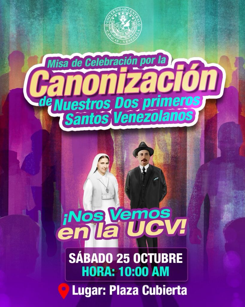 Este sábado 25 de octubre, las autoridades de la Universidad Central de Venezuela (UCV) y la Federación de Centros Universitarios (FCU) realizarán una misa en acción de gracias por la canonización de San José Gregorio Hernández y Santa Carmen Rendiles.